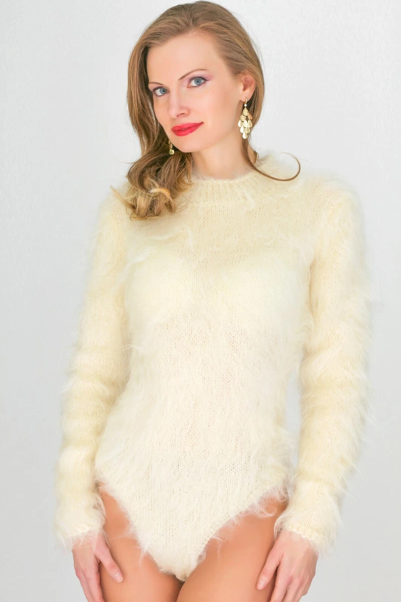 Fuzzy Mohair Bodysuit Fuzzy Sweater Hand Knit Warm Fluffy Soft Top Supertanya Ebay